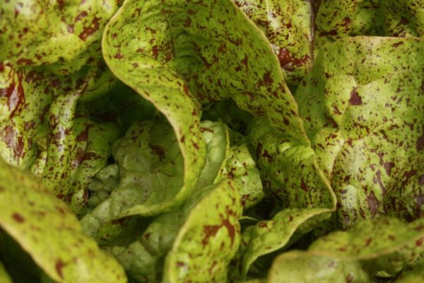 Laitue aux feuilles allongées et pointues, tirant sur le brun